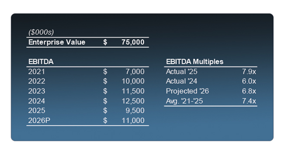 With fluctuating earnings and varying levels of uncertainty, the distinction between historical, current, and projected earnings has never been more important. By way of example, a purchase price on the following hypothetical business can be interpreted and underwritten many different ways: