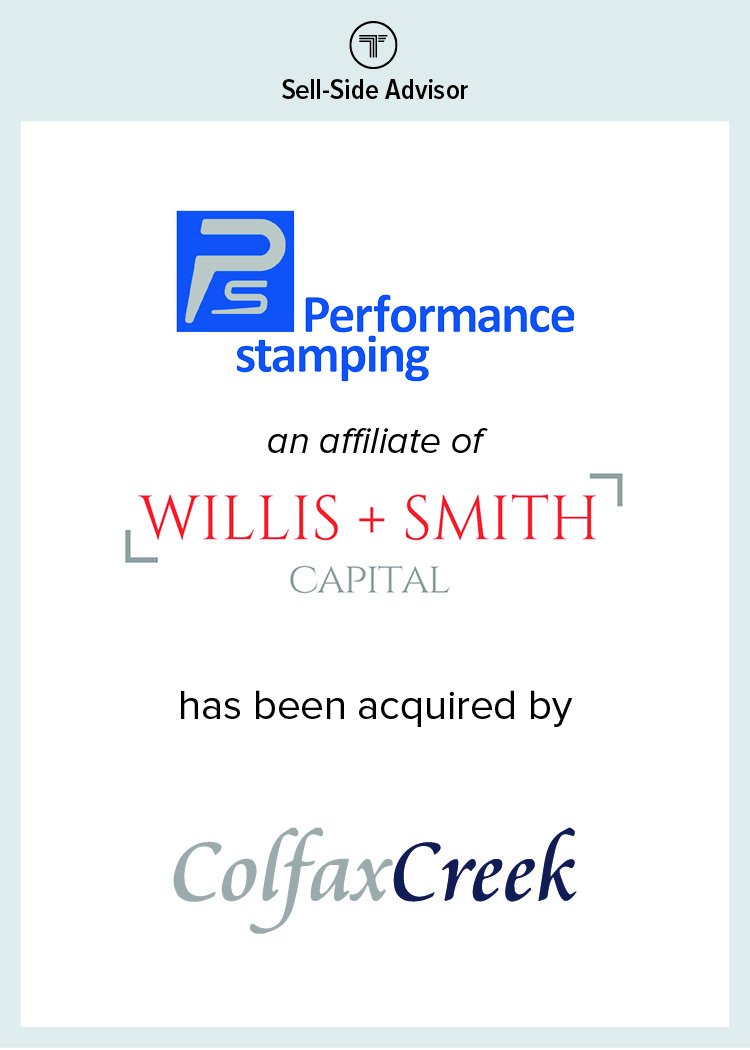 Taureau Group, LLC is proud to announce that our client, Performance Stamping, LLC (“Performance Stamping”), an affiliate of Willis & Smith Capital, has been acquired by Colfax Creek.
